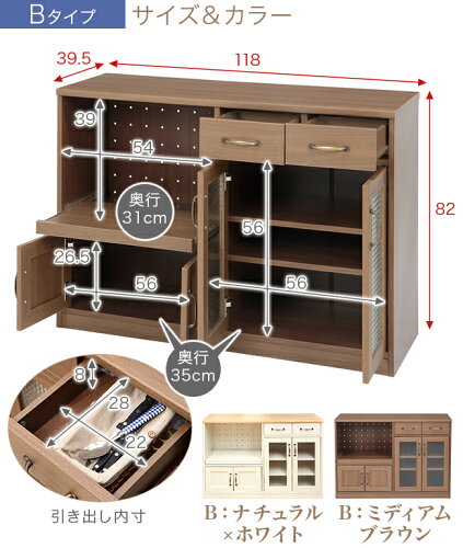 商品詳細 サイズ 【Aタイプ】幅120×奥行39.5×高さ89m 【Bタイプ】幅118×奥行39.5×高さ82m 仕様 【Aタイプ】材質:合成樹脂化粧繊維板 【Bタイプ】材質:プリント紙化粧繊維板 重量:約38kg 背面化粧仕上げ 2口コンセント付き キャスター付き ※お客さま組み立て品 商品説明 ガラス扉の棚 高さ調整が3.2cmピッチで可能な棚が2枚付属。