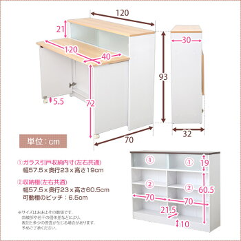【150時間限定 ポイント10倍!! 12/11(火)1:59迄】 キッチンカウンター バタフライ 両面 片面 間仕切り スリム バタフライキッチン カウンター キッチン収納 キッチンキャビネット 食器棚 キッチンラック 台所収納 収納棚 作業台 対面 奥行32 幅120 食卓テーブル 【OG】